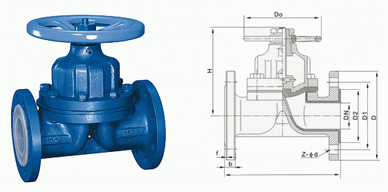 1、复合隔膜将阀体下部腔与阀盖内腔隔开,并与之形成直流通道,使隔膜上部的阀杆,阀瓣等内件与介质完全隔离,省去填料密封结构,介质的内漏和外漏可同时避免。